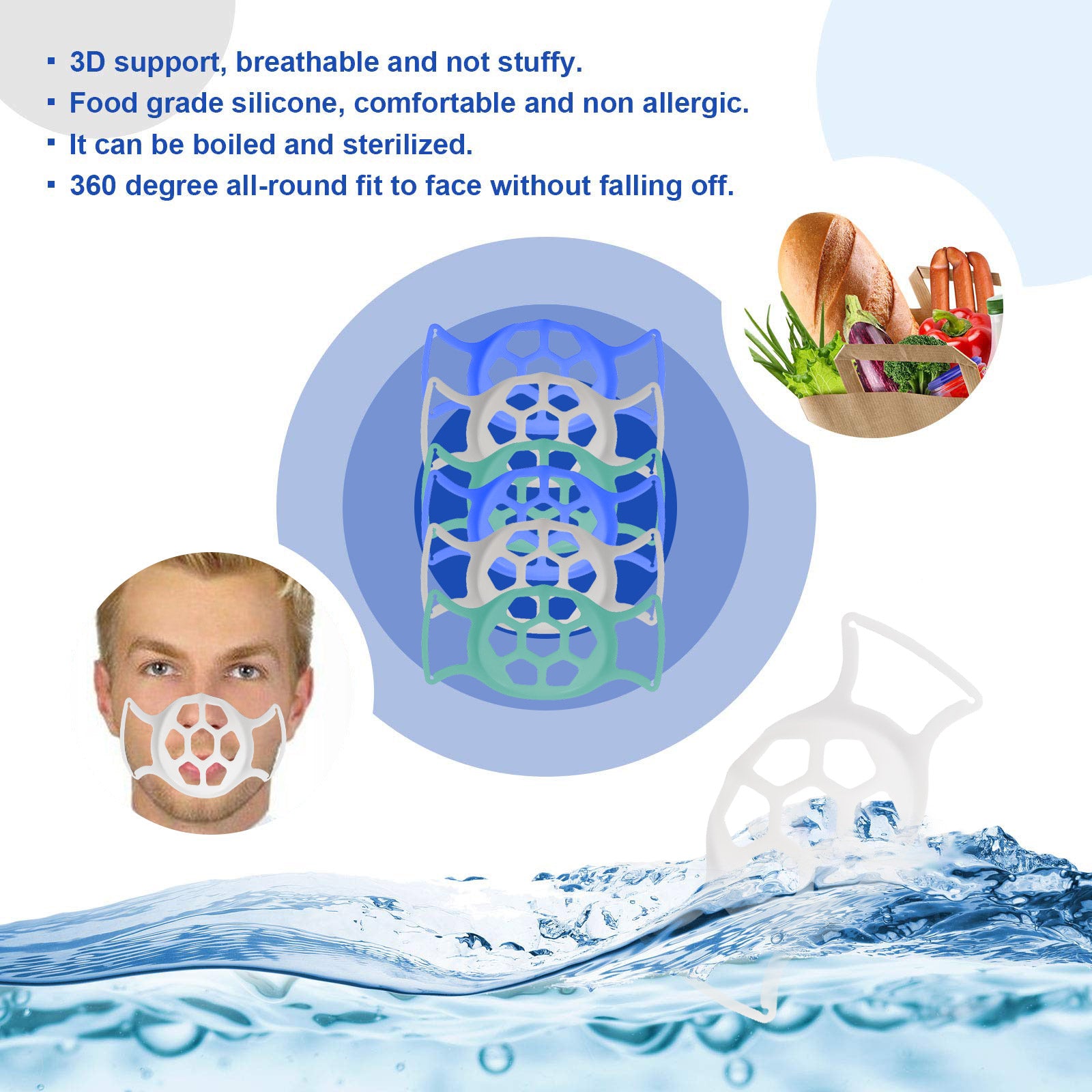 • High-quality Material: Face frame support bracket made of food-grade silicone material, soft, smooth and comfortable, washable, and reusable.