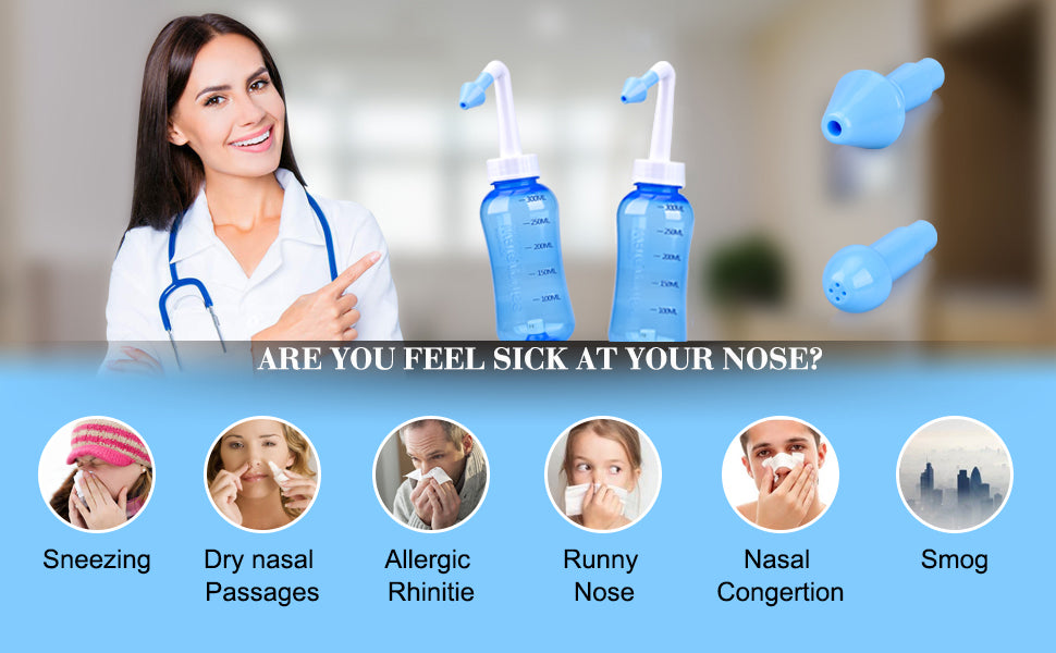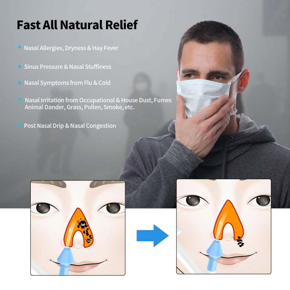 - Ergonomic Design - Nasal wash bottle is designed according to the internal physiological structure of the human nasal cavity, Irrigating nasal passages and sinuses rinses out mucus and various irritants.