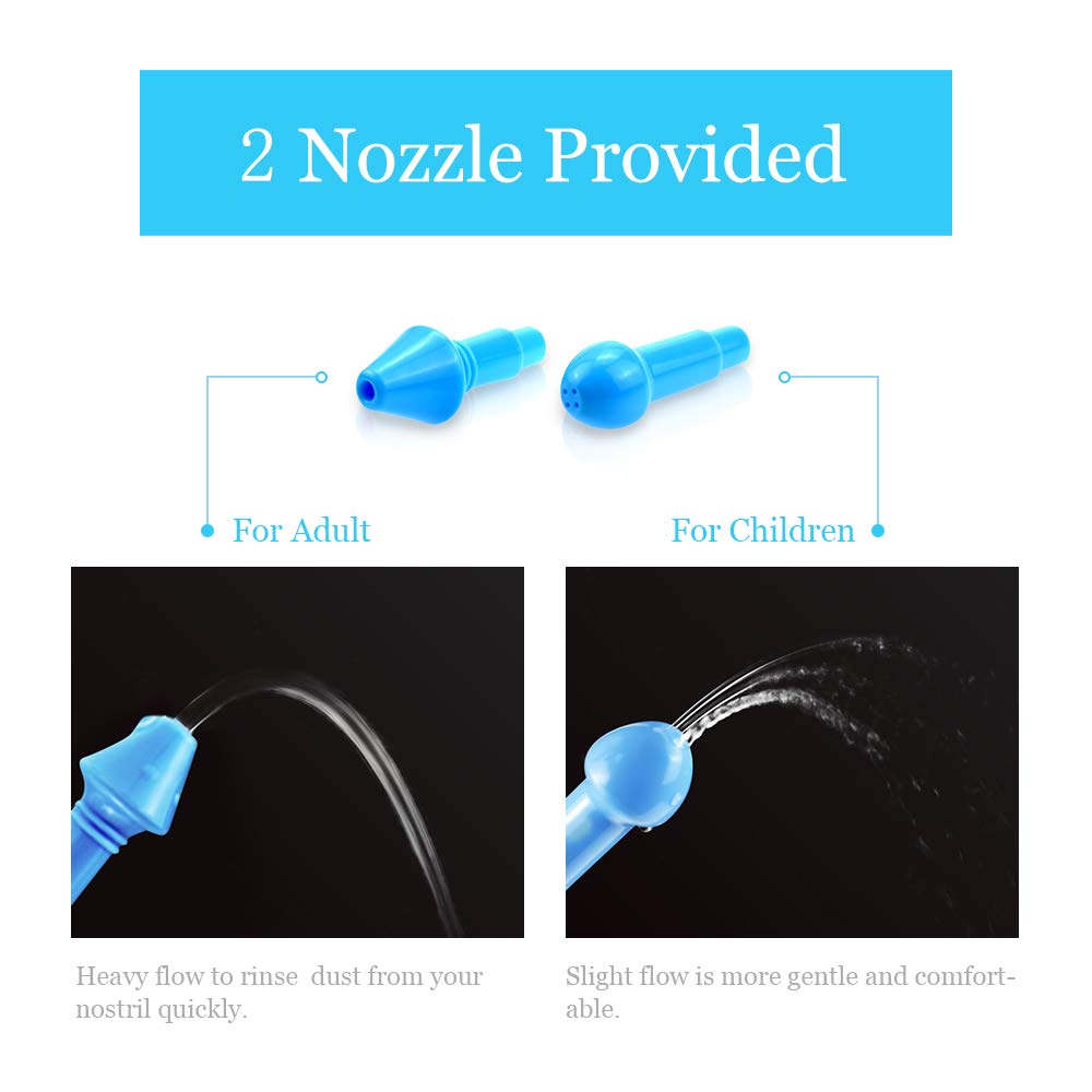 - Save Your Money - 2 in 1 rinse nasal bottle can be shared with an adult and a child. There are 2 replaceable tips, one for kids, and one for adults.